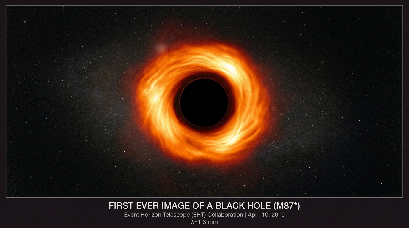 2019년 4월 10일, 인류는 처음으로 블랙홀의 사진을 손에 넣었다. 전 세계 언론이 일제히 같은 이미지를 실었다. 주황빛으로 타오르는 고리, 그 중심에 자리한 어둠. 반세기 넘게 수식과 이론 속에만 존재하던 블랙홀이 마침내 눈에 보이는 형태로 나타났다.