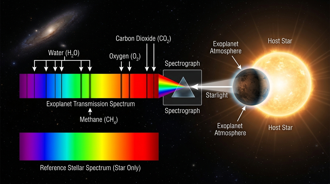 수백 광년 떨어진 행성에 생명이 있는지 어떻게 알 수 있을까. 그 행성에 탐사선을 보내는 것은 현재 기술로는 불가능하다. 그러나 그 행성의 빛을 분석하는 것은 지금 실제로 하고 있는 일이다. 외계행성 대기 분광법은 별빛이 행성 대기를 통과할 때 남기는 화학적 흔적을 읽어내는 기술이다.