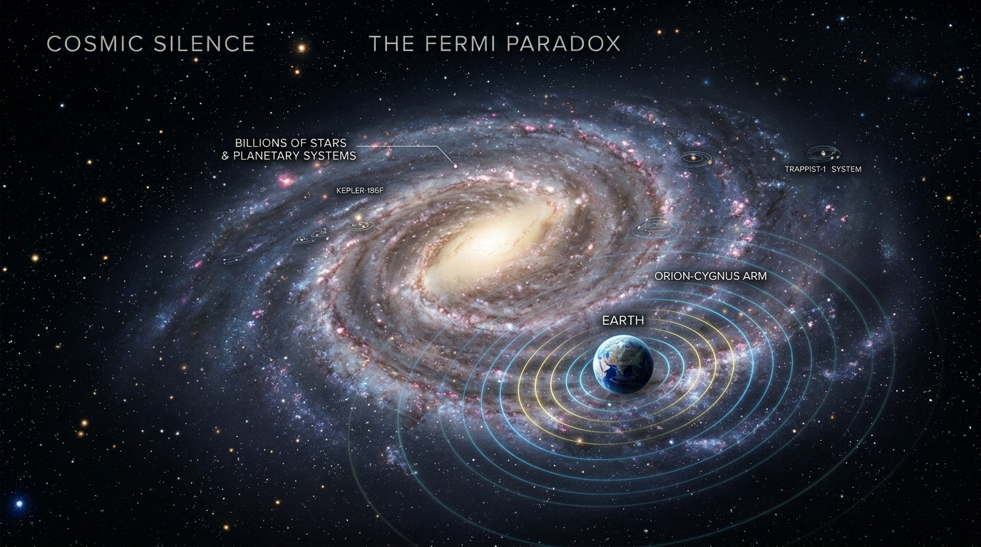 페르미 역설은 외계 문명이 없다는 증거가 아니다. 그것은 없음을 증명하지 않는다. 이 역설이 제기하는 것은 질문이다. 우주 어딘가에 지적 생명이 있다면, 왜 우리는 아직 그 증거를 보지 못했는가. 이 질문에 대한 답들이 외계생명체 탐색에서 가장 도발적인 철학적 논쟁을 만들어낸다.