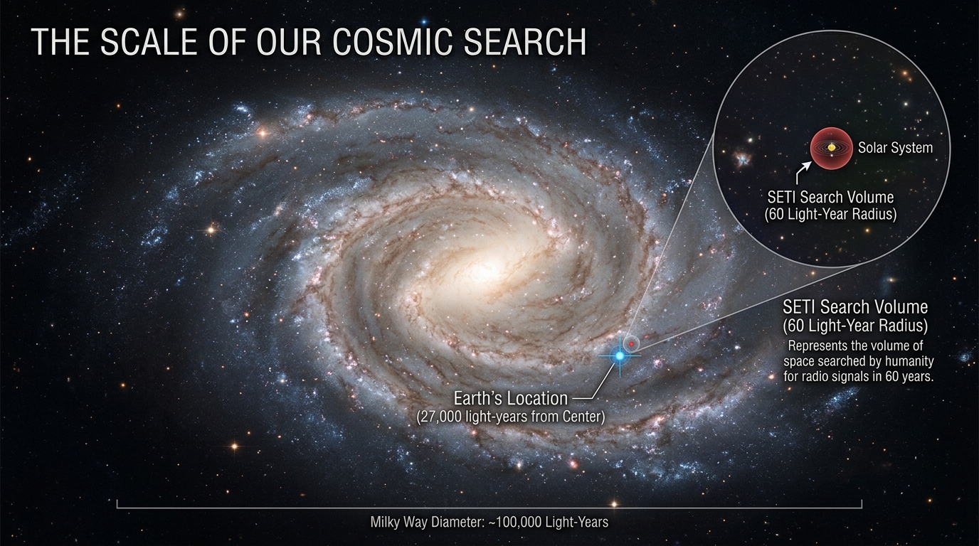 우주 규모에서 60년은 찰나다. 수십 억 년의 역사를 가진 우주에서, 문명의 수명이 얼마나 되는지도 모르는 상황에서, 지금 당장 신호가 없다는 것이 문명의 부재를 의미하지 않는다.