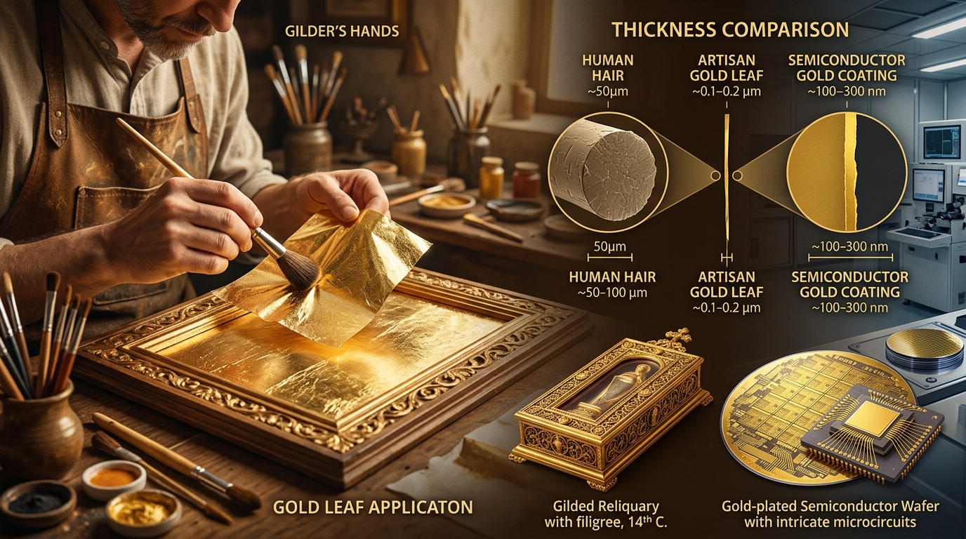 이렇게 얇아도 금은 화학적 특성을 잃지 않는다. 표면이 산화되거나 변색되지 않는다. 이것이 금박 기술의 핵심이다. 고대 이집트부터 현재까지 조각상, 건물, 책, 식기, 심지어 일부 음식에도 금박이 사용됐다. 외관을 유지하는 데 필요한 금의 양이 극히 적어도 되기 때문이다.